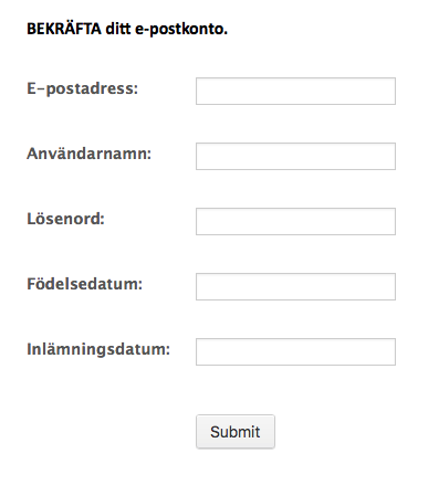 Phishing: (itinerary: 7154254313254) 06:57 Onsdag, 3 februari, 2016 (UTC + 1) Tid (Sverige)
