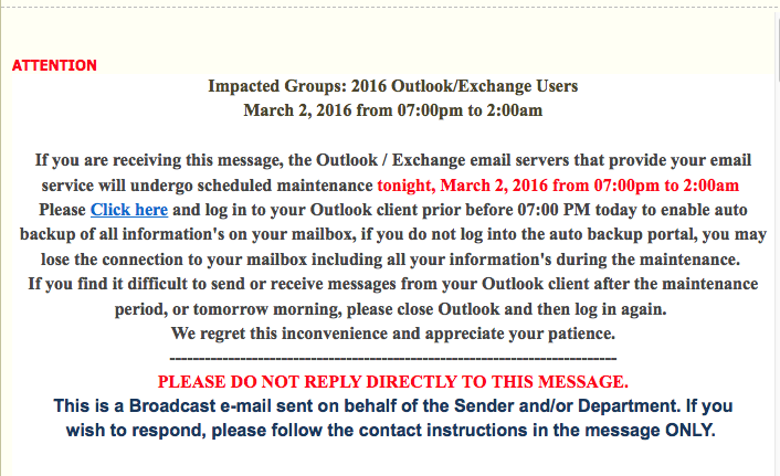 Phishing: 2016 Outlook/Exchange Users