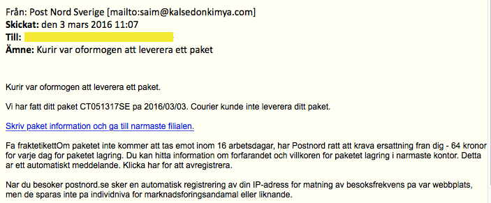 Phishing: Kurir var oformogen att leverera ett paket
