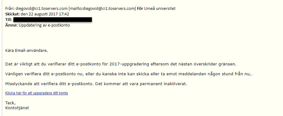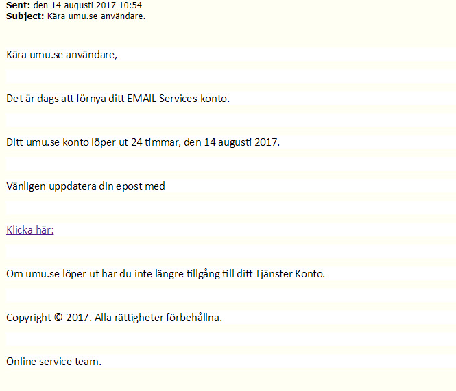 Phishing: Kära umu.se användare.