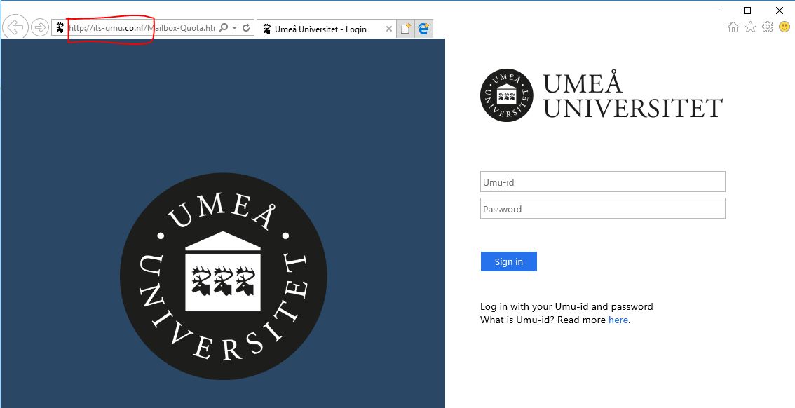 Always pay attention to the adress bar, in this case the domain is co.nf not umu.se.