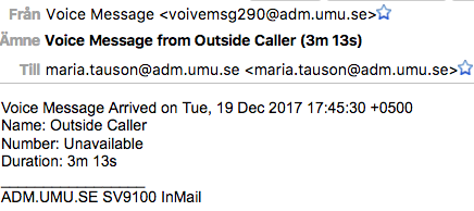 Detta dök precis upp i min inbox: Det utger sig för att vara ett röstmeddelande, men innehåller egentligen en trojan. Så ladda inte ner filen och öppna den inte utan radera bara meddelandet.